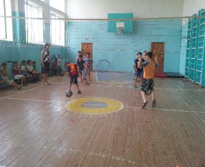 В спортивном зале школы был проведен конкурс "Веселые старты" для лагеря дневного пребывания.